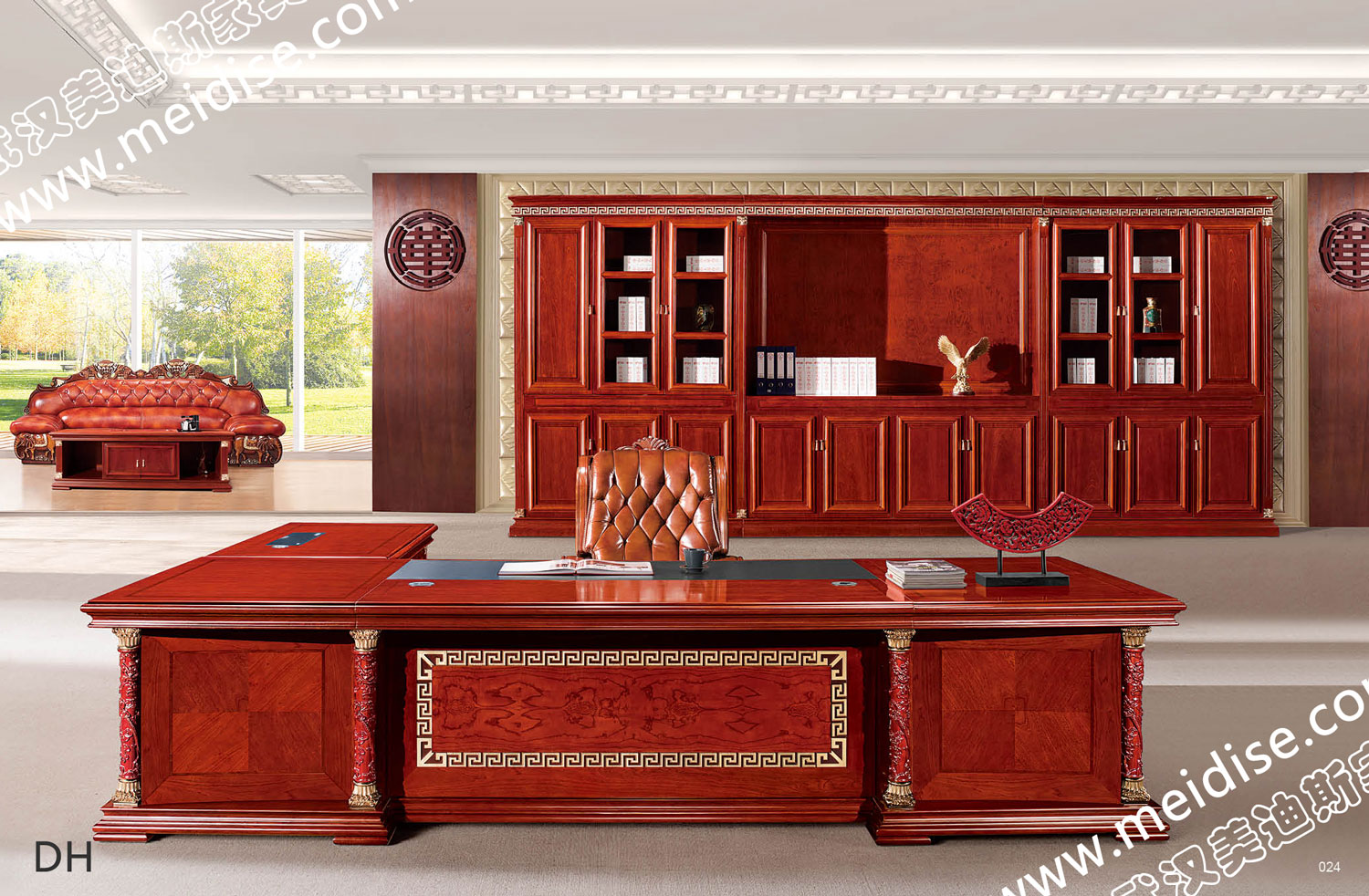 油漆辦公桌采用胡桃木及真皮制造,盡顯獨有品味的設計,完美展現個人獨特的決策品位。
